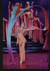 歌舞《妙女飛花》以中國文學經典《紅樓夢》為藍本,在電視劇《紅樓夢》的經典音樂中,十二金釵手執團扇嬉笑追逐,在四季如春的大觀園中憧憬春天、感悟如畫的少女時光,豐富的舞蹈語彙,充滿情趣和靈性。女舞蹈演員的服裝既古典又時尚,如薄霧輕煙般輕盈優美的裙裾舞動起來,使紅樓十二金釵被刻畫得分外生動鮮活,婀娜多姿,感人肺腑。國際著名導演張藝謀的電影《大紅燈籠高高掛》曾為中外觀眾所傾摹。中國國家東方歌舞團的大紅燈籠舞蹈《想親親》,就是一幅中國西北民俗風情畫卷。一個世代生長在黃土高坡的漢子終生渴望的的大紅燈籠,在夢裏映照著靈魂的躁動和熱血的沸騰,以那份嵌在心尖上質樸的愛,纏繞著千年不曾泯滅的幻想……