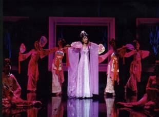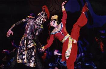 以中國國粹京劇演唱和舞蹈結合的形式,演繹霸王別姬故事的《江山美人》最為感人,由北京奧運會副總導演陳維亞編排。舞蹈以京劇《霸王別姬》中著名的“南梆子”唱腔(由著名歌唱家陳俊華現場演唱)引出了霸王與虞姬的雙人舞和古代士兵強勁的舞蹈,而音樂為舞蹈製造了從至愛深情到生離死別的大起大落的感情氛圍,而兩位著名舞蹈家的表演不僅有著相當默契的技巧,同時在情感表達上也非常到位。當表演到虞姬自刎的時候,音樂戛然而止,霸王包著虞姬痛不欲生,對天發出的一聲呼喊,撕心裂肺,隨後一曲動人的“南梆子”再次響起,這時舞臺佈景巨型京劇面譜驟然拉開,身穿一襲白衣的女演員飄然而出,一聲“看大王------”,將“兒女情長,英雄氣短”的悲壯演繹得淋漓盡致,令人無不心酸,熱淚盈眶。該團在《江山美人》的音樂處理上作出了開創性的新意,以京劇名曲做成京劇詠歎調版,充分利用交響音樂的張力,使舞蹈達到一種振憾的極限。