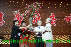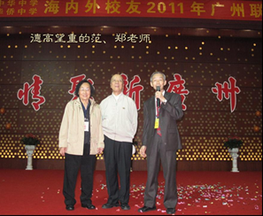 今日广州校友会有机会迎来世界各地这么多的校友欢聚一堂. 等一会儿,我们向尊敬的老师献上一束尊师的鲜花表示我们对老师的感谢!亦希望我们的校友促膝谈心, 大家互相分享我们这么多年来成功的喜悦! 各位校友,希望我们聚会之后多些参观我们日新月异的新广州;希望到我们祖国大江南北走一走,看看我们百多年来受尽凌辱的祖国今天是如何自强崛起的!相信每一位炎黄子孙都会为此感到骄傲和自豪!