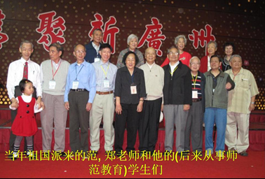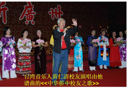 在这里我们希望我们校友有钱,有力,有技术的,多点参加我们祖国的建设.在这里我很高兴地介绍一下杨文明会长,我们澳门来的潘少强先生,还有温哥华来的李宝昌会长的公子,多伦多来的郑永丰的公子,他们在这方面都作出了很大的贡献.他们有投资的,设厂的,办店的,等等. 大家都知道郑永丰的公子在(广州)德正南开的柠檬叶越南歺厅,我们广州校友会很多校友都去聚过. 除此之外,我们在台下有很多校友都作出了很多贡献,在座的有一位在杭州来的杨贤 强校友,他是浙江大学的博士生导师,他在研究茶叶方面,研究茶多酚的学术方面不单是我国的一流,而且还是世界一流;杨贤强校友是我们国家的国宝之一.我们希望有更多的校友在这方面有更大的贡献!