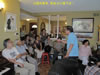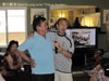 午餐刚刚结束,Mc陈自强急不及待地请 Manh Ha为大家演唱几首60年代非常流行的:"nho Ha Noi","Hai phong hoa phuong do",“viet nam Trung hoa nui lien nui song lien song",等越南民歌,他还用中文唱了几首歌颂中越友谊的歌曲,虽然没有音乐伴奏但他那响亮的歌喉不减当年,抒情的投入表演,赢得大家一次又一次的热烈掌声;来自温哥华的李传新校友也趁机与Manh Ha 共唱一首"tinh ca Tay Bac",间中陈自强也加入变成了三重唱;曾明老师忍不住也唱了一首中国民歌“马车夫之恋”助兴;年轻校友陈国雄也凑热闹唱了一首歌;当天的聚会就像一个演唱会,把大家仿佛返回了上世纪60年代在河内“vuon hoa Chi Linh" 和海防"nha hat lon"听演唱会一样记忆犹新、回味无穷。