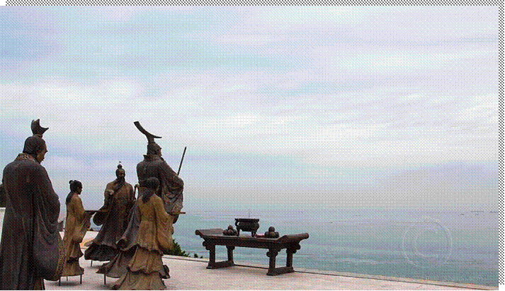 在这座出名的绿色城市,午餐二十道绿色蔬菜和豆腐,我们也不加挑剔,匆匆用完,干着渡海到对岸的刘公岛——中国5A级旅游胜地。